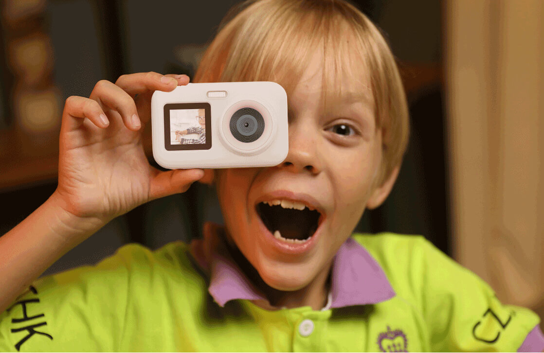 The SJCAM FunCam+ kids camera’s dual screens open up a world of creative possibilities. The front screen lets kids see themselves while filming selfies or vlogs, ensuring perfect framing every time, while the rear screen offers a clear view of the action they’re capturing.